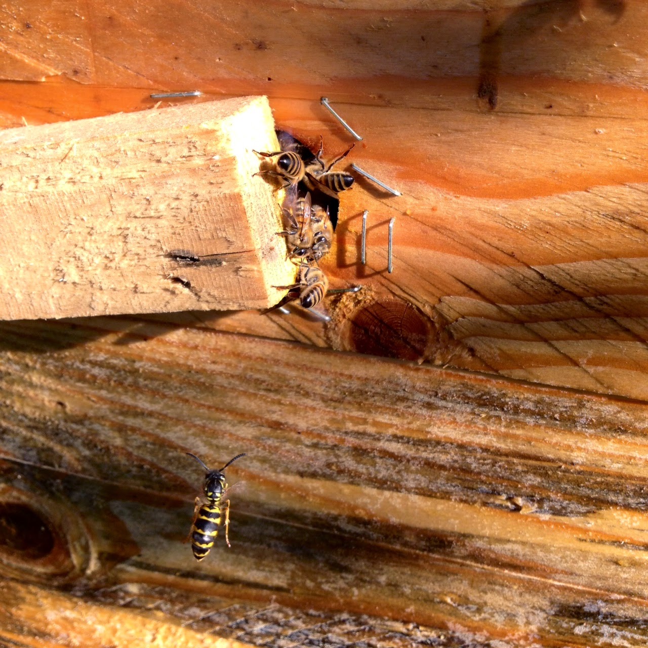 Wasps are trying their best to get into the hives and rob the honey